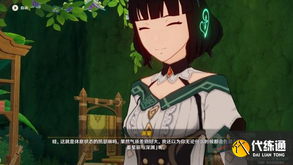 随后继续过剧情,进入酒馆完成剧情对话,前往大巴扎,新老婆妮露也在这,对话结束在跟随任务指引大巴扎逛逛,随后可以看到休闲状态的凯瑟琳(终于不在柜台 向着星辰、、、、)完成后续剧情,前往聚砂厅