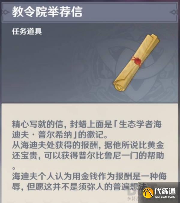 原神教令院举荐信有什么用 原神教令院举荐信用法介绍