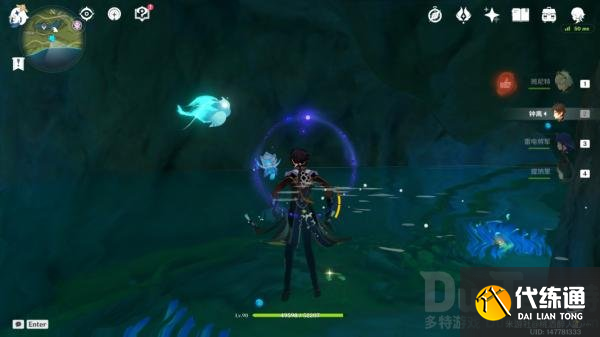 然后跟着仙灵一直走,他会带着你到一个洞窟(注意体力消耗,游过去容易体力不支,建议准备好体力类食物)