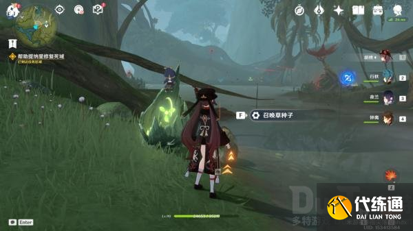 沿着右手边的树干前行,触发剧情,剧情后继续沿着树干前行后哈会有剧情,随后我们苏醒,发现被提纳里和柯萊所救,一大段剧情对话,第一小节任务完成。