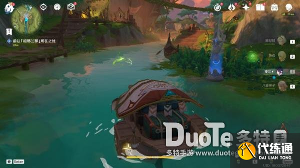 乘坐浪船,沿着河流,跟随绿色的痕迹,一直前进,上岸后,同样跟着绿色的痕迹走。