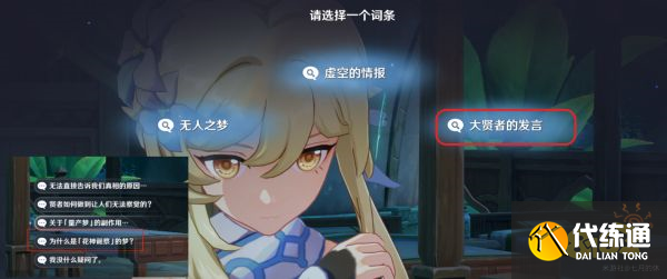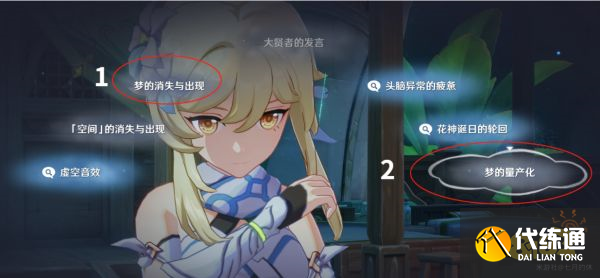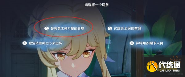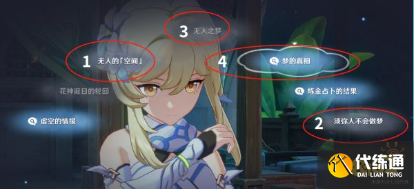 3、与纳西妲对话,根据红圈标记的顺序选择选项!