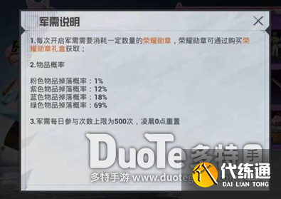 4、军需每日参与次数上限为500次,凌晨0点重置。