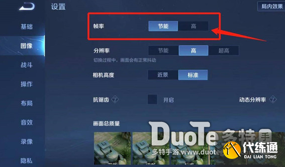 3、找到帧率,把节能设置成高,最高就是120帧率