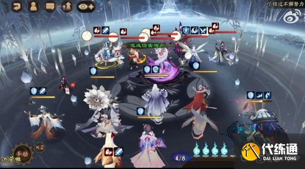 操作tips:因辉稳定二技能续结界,有目标残血可大招追残收割,一目连可来回二三技能套盾,双阎魔跟帝释天全程稳控对面的单位式神对面即可,比较有点折磨坐牢流。