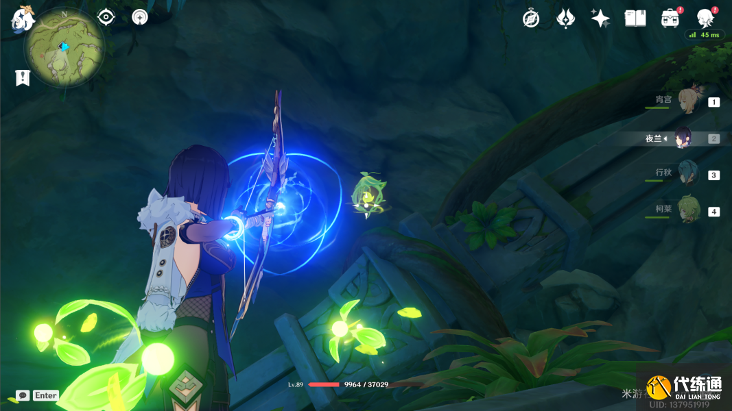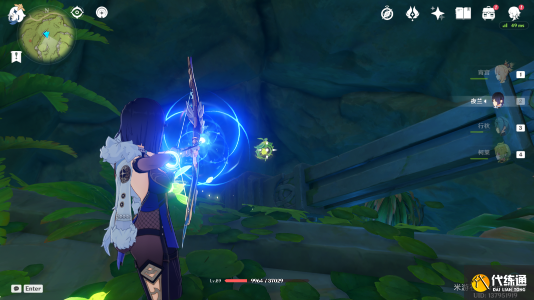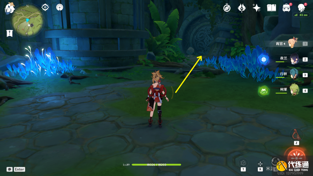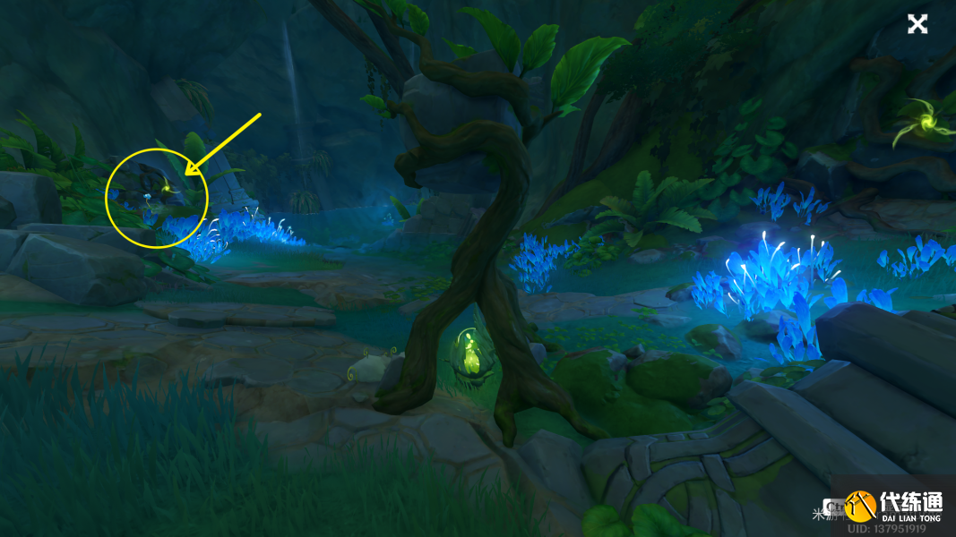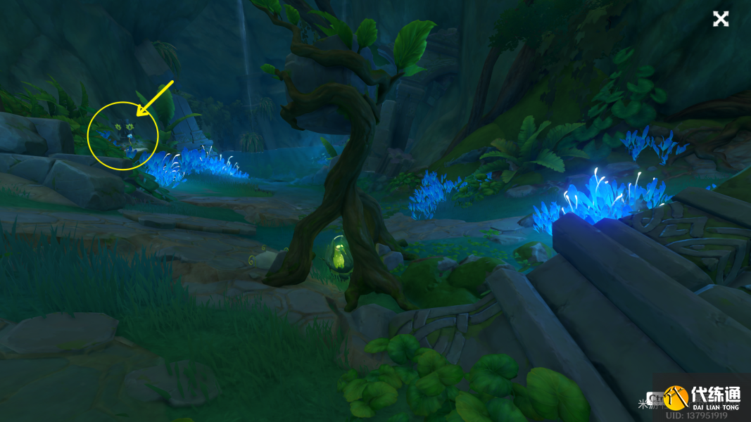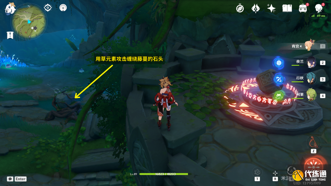 (3)注意到下图位置有一个缠绕藤蔓的石头,请使用草元素攻击这块石头。