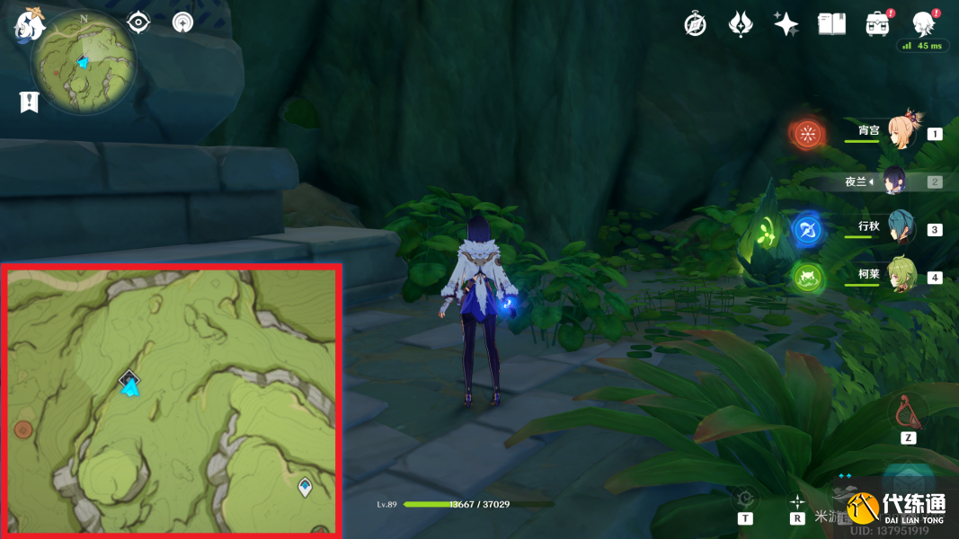 2.找到64-68个,开启12个宝箱,前往下图位置,跟兰那罗游戏,获得一个普通宝箱,也可以满探