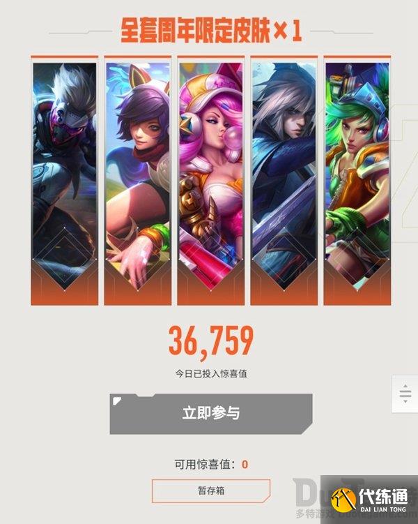 ?简单来说就是增加日活活动,每天通过完成PVP对局来获取惊喜值,每天最多5个。然后获得的惊喜值可以投入至臻奖池和周年限定奖池,每天抽两个能中奖,中不了奖的每个惊喜值给66蓝色精萃。
