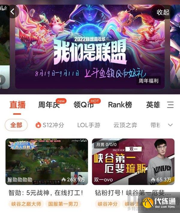 也是打开APP,进入LOL专区,最上面的滚动栏有联盟嘉年华的页面。