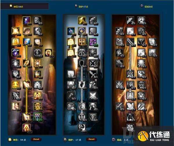 1.奶骑WLK版本天赋还是比较容易点的,争议点也不是很大,其中采取神圣54点,防护17点的加点方式。