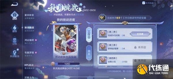 活动参与方式也十分简单,任务分为工作日和周末两个区间段,需要完成的任务包含“完成击败/助攻”、“击败小兵”、“参与5V5对局”等等,做活动封顶可以获取80点“秋月点”,在九月第四周的周末除了正常任务还可以通过“钻石兑换积分”的方式在获取20点秋月点,本次活动最终满额可以获得100点秋月点!