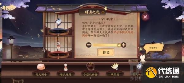 阴阳师今天开启了中秋节活动,其中辉月之礼需要玩家每天根据线索提交不同的道具,那么大家知道辉月之礼第一天的答案是什么吗?下面快跟随多特小编一起来看看吧。
