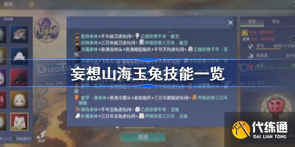 玉兔是妄想山海最近新推出的珍兽,玩家可以通过千年玉兔进化丹获得,相信很多玩家不太了解玉兔的技能,那么下面小编就给大家介绍妄想山海玉兔的技能,感兴趣的小伙伴可以了解一下。