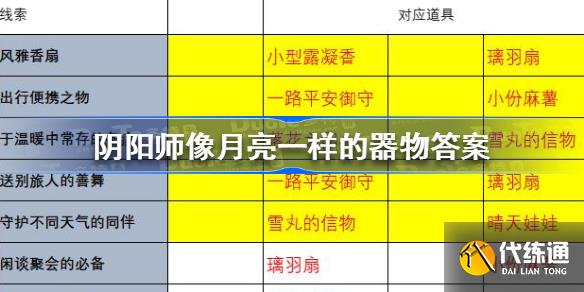 以上就是阴阳师像月亮一样的器物答案分享了。希望这篇文章能够对看到这里的你有所帮助。