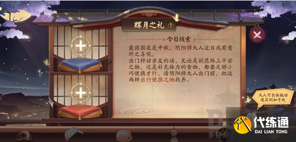 「辉月之礼」包含8种中秋聚福物品,如果提供了正确的「辉月之礼」,则会获得更多的「福气」,每日首次提供正确物品还可获得额外奖励。