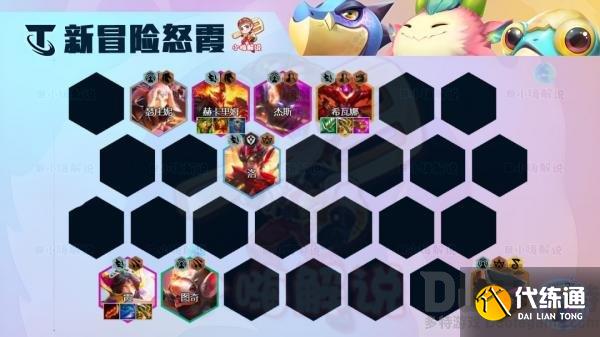 3阶段:3-2拉6人口,如果有呲呲优先上呲呲开出5冒险羁绊。呲呲的加入能够完美契合阵容前中期过渡,希瓦娜和杰斯/赫卡里姆的装备都可以给呲呲打工。如果没有呲呲,可以补充任意一前排。
