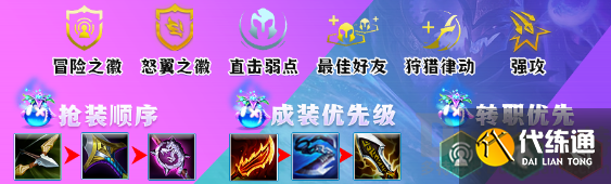 开局装备:反曲之弓。装备优先考虑先做出鬼索的狂暴之刃。