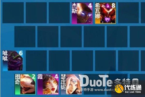 3、阵容站位:龙女和杰斯放前排,剩余棋子直接沉底,小心霞不要被刺客切就行了。