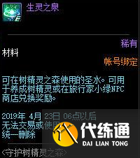 生灵之泉的作用是可以使用【生命之泉】在NPC旅行家小绿兑换奖励。