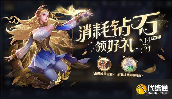 王者荣耀9月14日更新公告,消耗钻石抽精品皮肤。一声梧叶一声秋,峡谷福利乐悠悠!S28赛季迎来尾声,参与钻石消耗活动送好礼!
