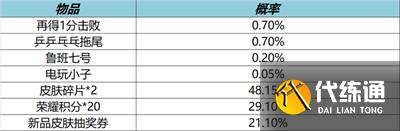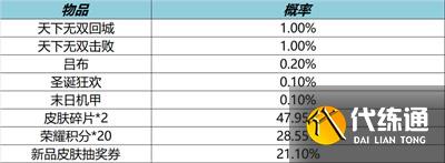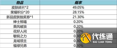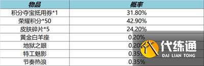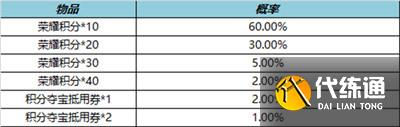 礼盒内含荣耀积分*10,附赠奖励概率公示如下: