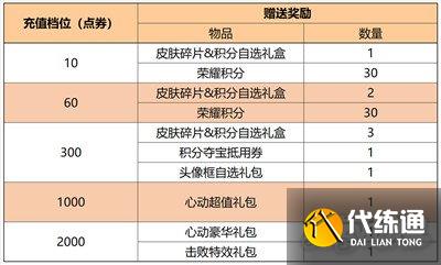 皮肤碎片&积分自选礼盒:打开礼包可任意选择以下奖励之一:荣耀积分*10或皮肤碎片*1