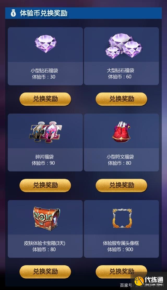 首先就是体验服当中有一个体验积分,而体验币则能够兑换各种各样的奖励,其中包括钻石、铭文以及体验卡等等,而且体验服领取的奖励还可以兑换到正式服。但这些奖励都不重要,最值得兑换的还是碎片福袋,90个体验币就能够兑换一个福袋,而每个福袋当中有两个皮肤碎片,也就是说大家最快一个半月就能够得到一款新的史诗皮肤。