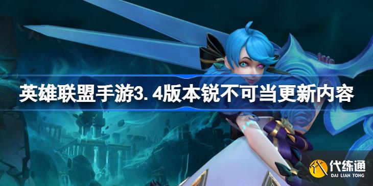英雄联盟手游在9月16日进行了3.4版本锐不可当的更新,新增了不少内容,下面小编为大家带来英雄联盟手游3.4版本锐不可当更新内容,感兴趣的小伙伴一起了解一下吧。
