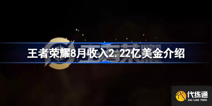 王者荣耀作为腾讯最赚钱的手机游戏,8月的报表显示整个月收入了2.22亿美金,下面小编为大家带来王者荣耀8月收入2.22亿美金介绍,感兴趣的小伙伴一起了解一下吧。