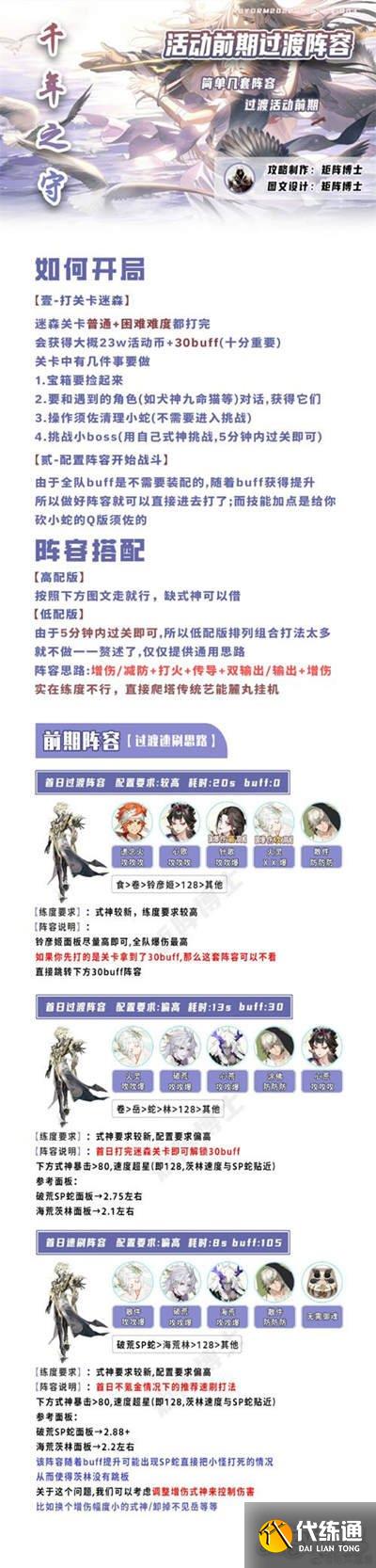 3.由于5分钟内过关即可,所以低配版排列组合打法太多,阵容思路是增伤/减防+打火+传导+双输出/输出+增伤。