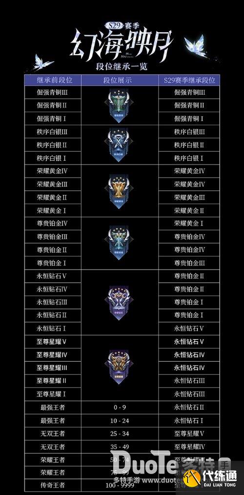 王者荣耀s29继承段位表图 王者荣耀s29继承段位表图分享