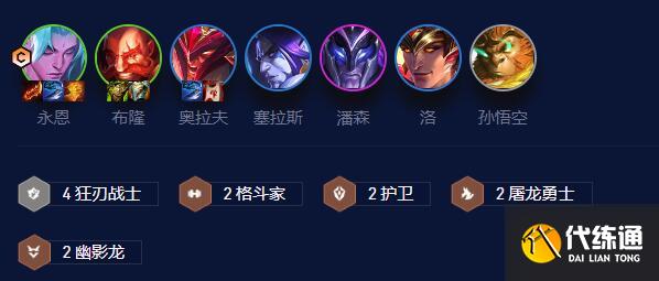 阵容羁绊:4狂刃战士+2格斗家+2护卫+2屠龙勇士+2幽影龙