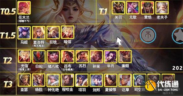 T3:亚索、达摩、项羽、钟无艳、程咬金、夏侯惇、哪吒、司空震、杨戬、曹操