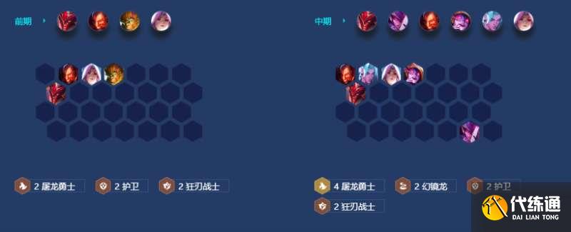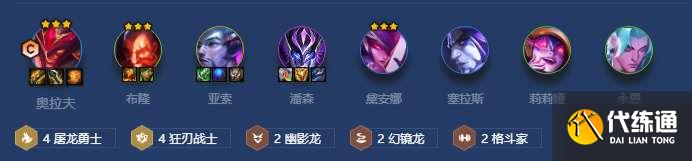 3-2升六人口,优先找到四屠龙勇士,同时搭配上永恩和蕾欧娜开狂刃战士和护卫;在4-1升七人口,搜到二星奥拉夫后即可可以上八人口,如果奥拉夫来的多或者没有同行可以考虑在七人口搜三星奥拉夫