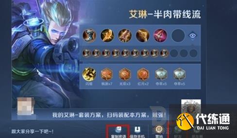 4、关于使用方式,图片版让好友扫码,文字版让好友复制登录游戏,然后游会自动识别并且提示使用这套出装方案。