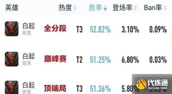 这让白起成为了龙鳞利剑增强最大的受益者之一,新赛季全分段排位胜率高达52.82%,巅峰赛和顶端局的胜率也在51%以上。