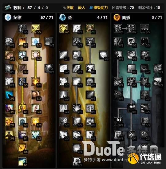 投入了57点戒律天赋,将戒律天赋中所有的重要天赋都能点出来。