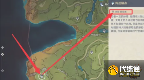 1、打开游戏地图,首先点击传送前往须弥善见地。