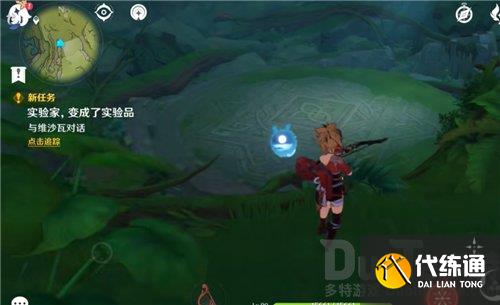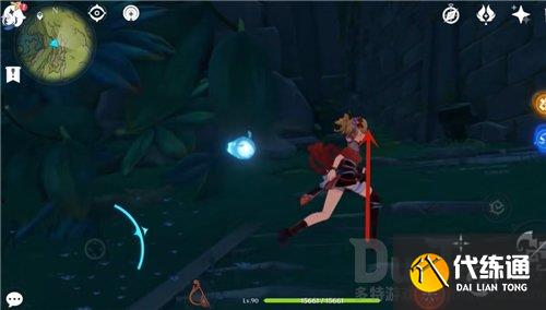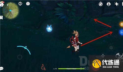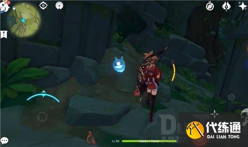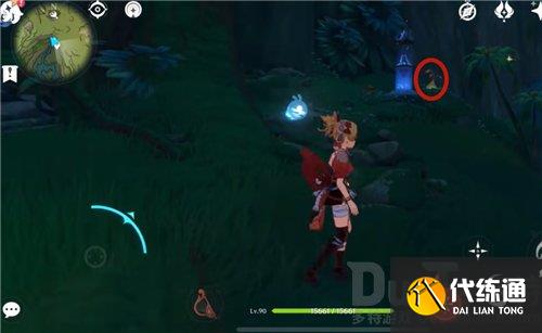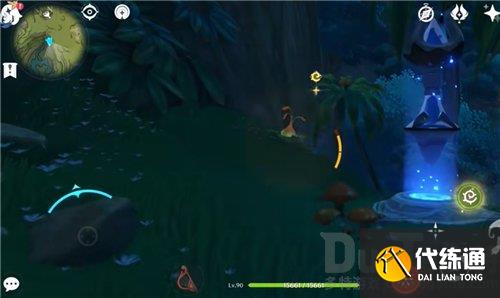 然后视角往左转,可以看到传送点旁边有一个植物,用草元素攻击这个植物,会出现钩锁点。