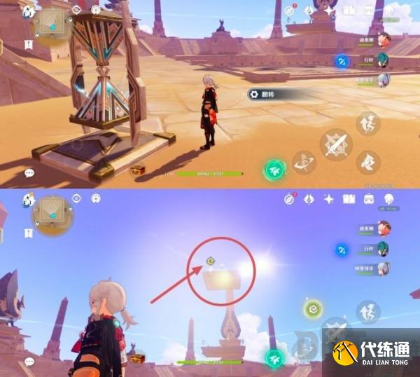※翻转任意一个元能沙钟,出现四叶印,通过四叶印传送到最高处平台