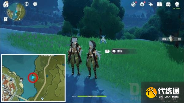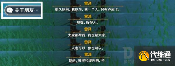 雷泽在蒙德城外的小山坡上,也正如他所说的:“我是,城里和城外的,桥。”