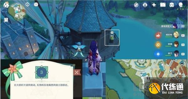 嗯,就在西风骑士团旁边的那个风车塔的上面,爬上去实在太慢了,还是推荐大家从别处飞上去为好吧。