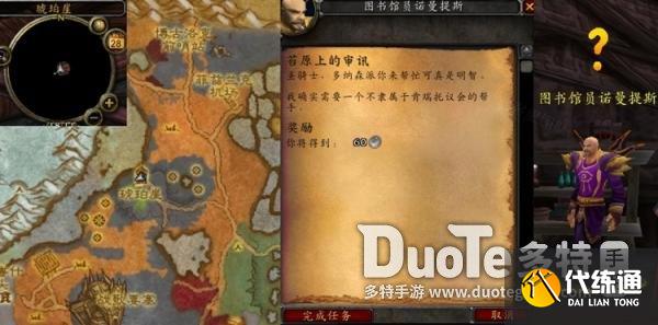 完成NPC:图书馆员诺曼提斯(北风苔原,琥珀崖)