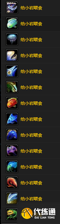 在背包里准备好诺森德鱼类,用小岩想吃的对应的鱼对话喂它,它会获得持续5分钟的“快乐”buff,并给你一块随机品质的鹅卵石。