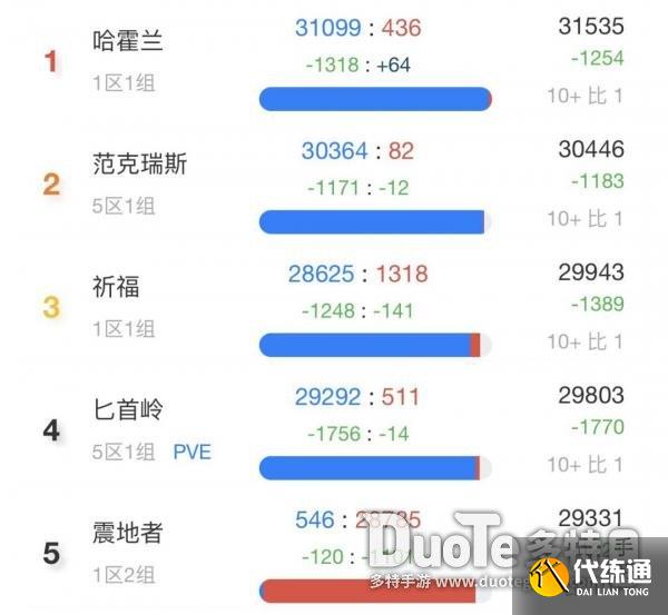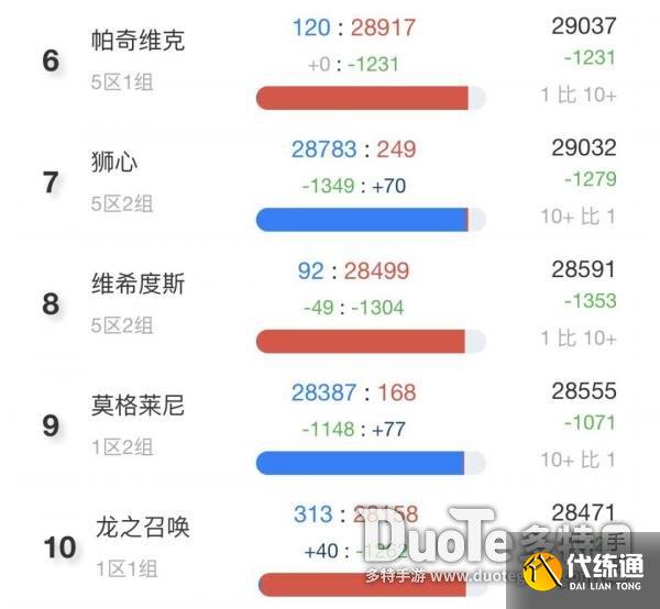 随后我们再来看看排在第6到第10的服务器,分别是帕奇维克、狮心、维希度斯、莫格莱尼和龙之召唤。