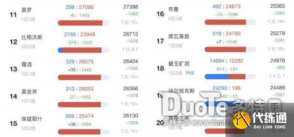 前20的服务器人口规模差距并不大,最少的雷霆之击实际上也只比最高的哈霍兰少20%左右。