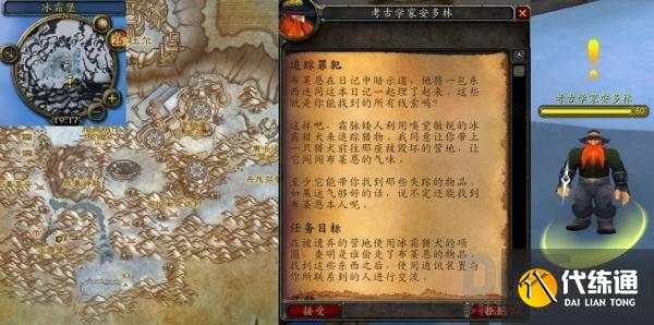 接取NPC:考古学家安多林(风暴峭壁,冰霜堡)