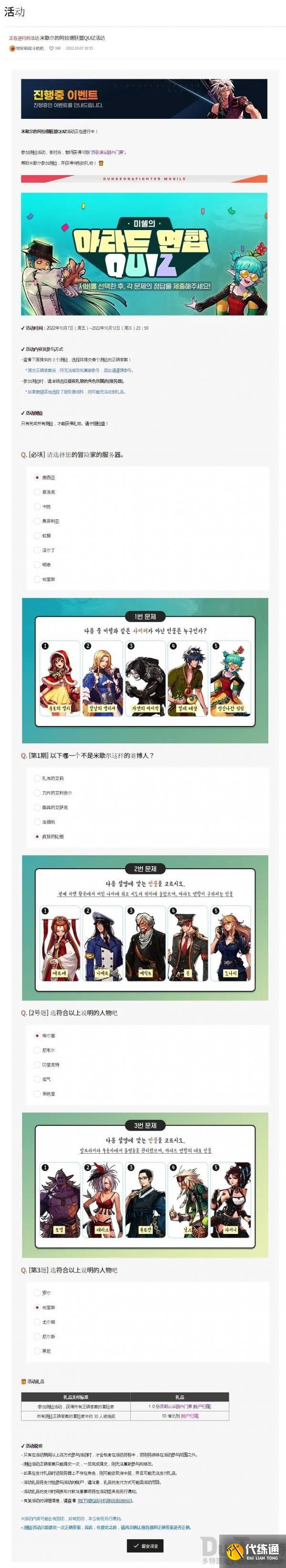 地下城与勇士韩服10月7日开始的答题活动答案公布。