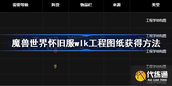 魔兽世界工程图纸哪里买 魔兽世界怀旧服wlk工程图纸获得方法