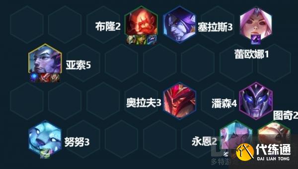多余装备:亚索是阵容副c,消化永恩不要的输出装备。雷欧娜/努努消化灵风、法衣、传送门这种针对性装备灵活调位,后期根据变阵情况给高费卡找装备。